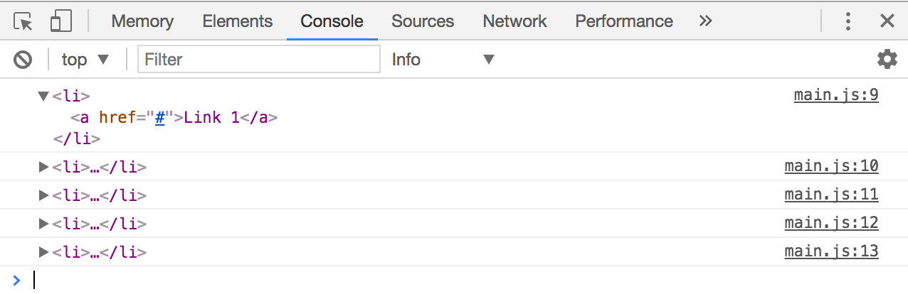 console.log(fourthItem)// <li><a href="#">Link 4</a></li>Wrapping up