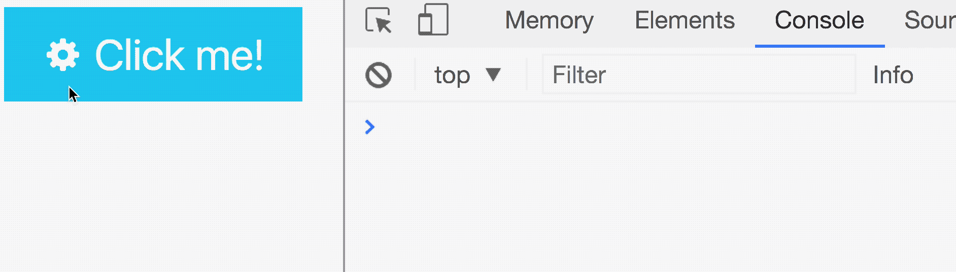 <button> <svg><!-- Gear icon --></svg> <span>Click me!</span></button>const button = document.querySelector('button')button.addEventListener('click', e => { console.log(e.target)})Watch what happens if you click on the gear icon or the text.