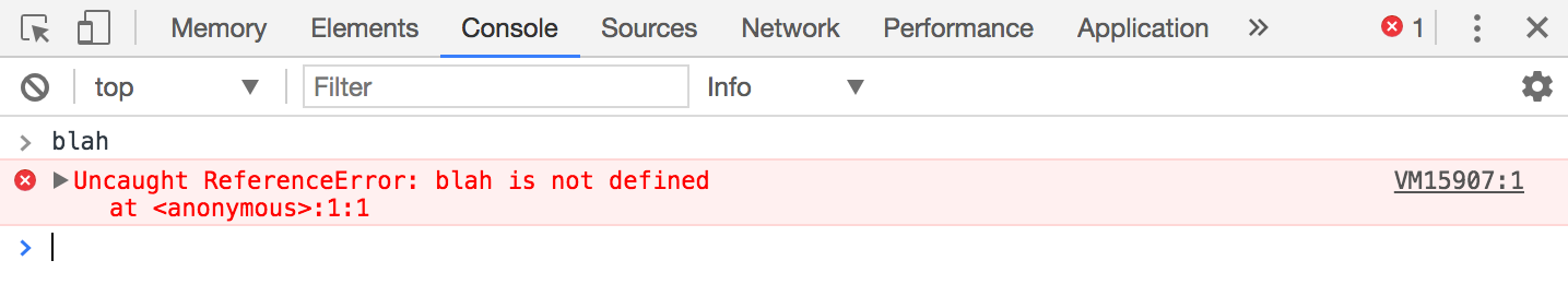 If you typed invalid JavaScript into the console, you would get an error, like this: