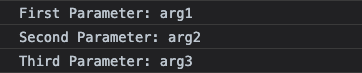 function functionName(param1, param2, param3) { console.log('First Parameter: ' + param1) console.log('Second Parameter: ' + param2) console.log('Third Parameter: ' + param3)}Arguments