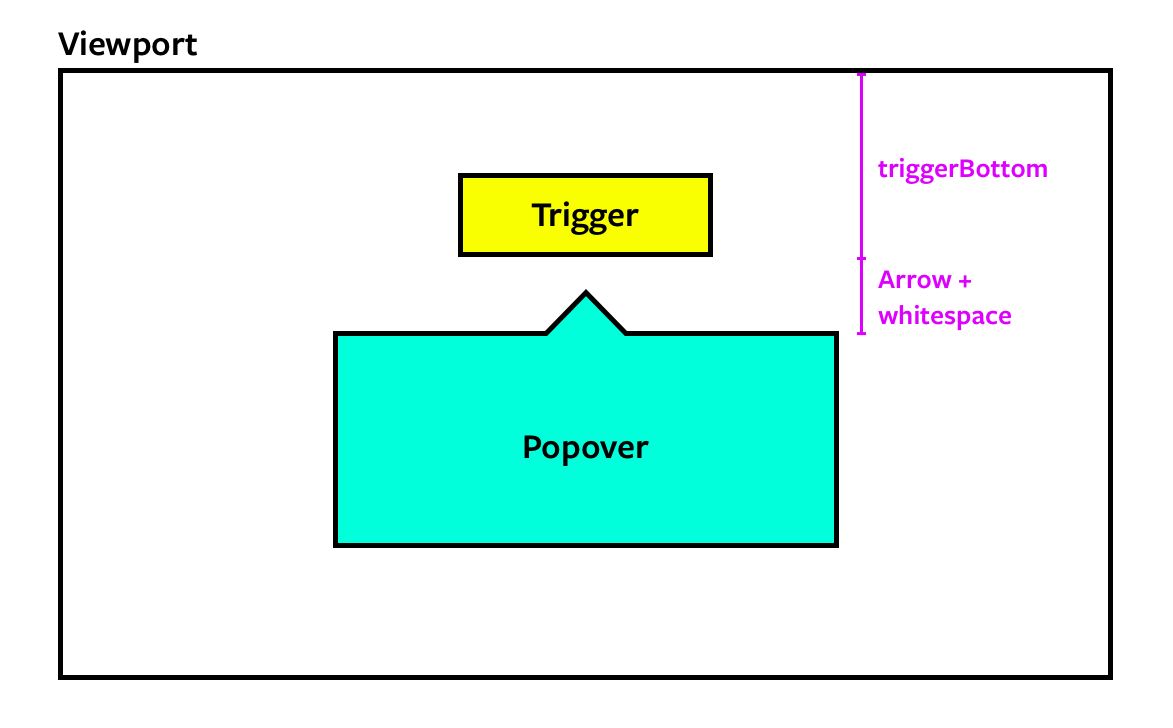 function calculatePopoverPosition(popoverTrigger, popover) { // ... if (position === 'bottom') { return { left: (popoverTriggerRect.left + popoverTriggerRect.right) / 2 - popoverRect.width / 2, top: popoverTriggerRect.bottom + space, } }}