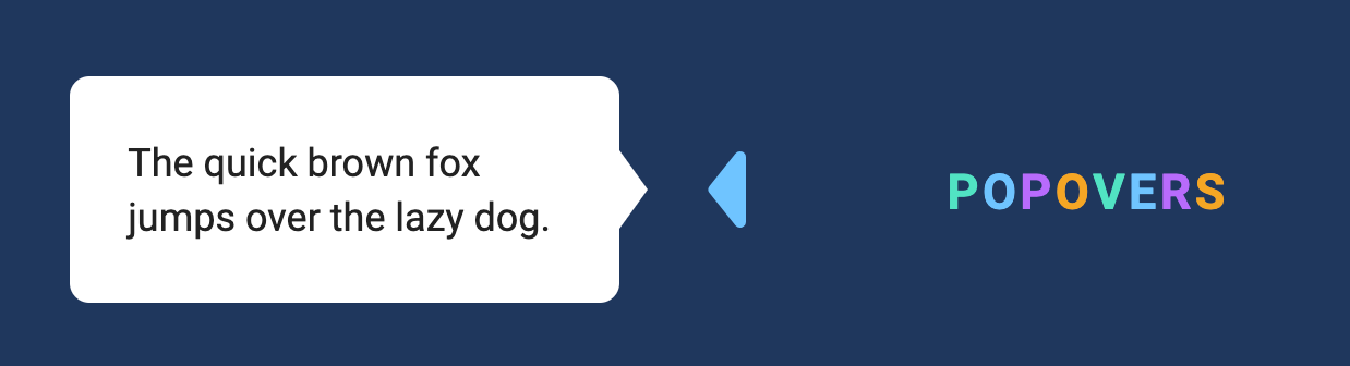 <!-- Popover trigger --><button class="popover-trigger" data-popover-position="left"> <svg viewBox="0 0 40 20"> <use xlink:href="#arrow"></use> </svg></button><!-- Popover HTML --><div class="popover" data-position="left"> <p>The quick brown fox jumps over the lazy dog.</p></div>Code for the left popover is similar to the top popover. It can be hard to write the left popover’s code if we need to avoid variable name collisions with the top popover. The best way to overcome this is to isolate the top popover’s code.