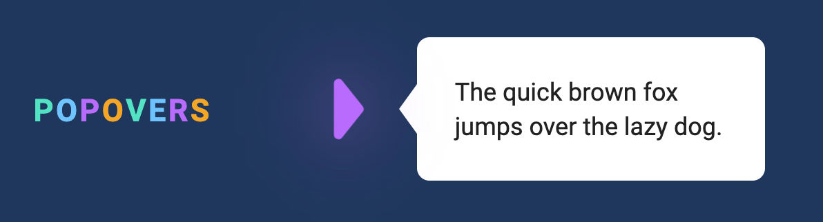 <!-- Trigger --><button class="popover-trigger" data-target="pop-3" data-popover-position="right"> <svg viewBox="0 0 40 20"> <use xlink:href="#arrow"></use> </svg></button><!-- Popover --><div id="pop-3" class="popover" data-position="right"> <p>The quick brown fox jumps over the lazy dog.</p></div>Next, we need to calculate the right popover’s left and top values.
