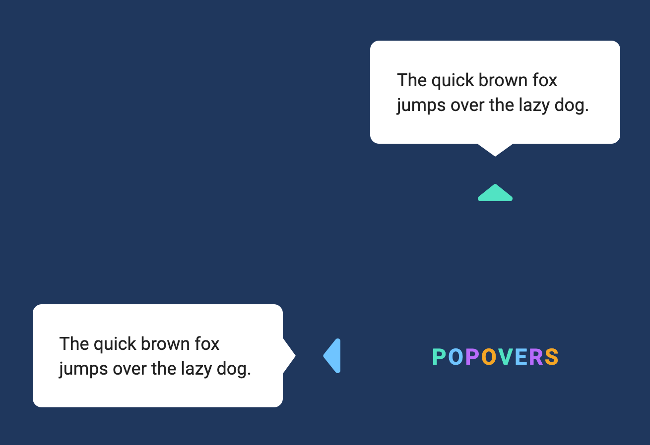 <div id="pop-2" class="popover" data-position="left"> <p>The quick brown fox jumps over the lazy dog.</p></div><!-- Triggers --><button class="popover-trigger" data-trigger="pop-1" ...>...</button><button class="popover-trigger" data-trigger="pop-2" ...>...</button>We can find the popover with the id attribute.